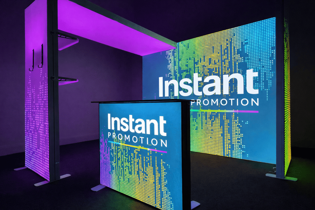 Lighting and dimension increase visibility dramatically. We create illuminated signage, LED-integrated panels, and 3D acrylic or metal logos that add depth and prestige to your stand.Raised and backlit branding enhances perception — making your company appear established, strong, and trustworthy.